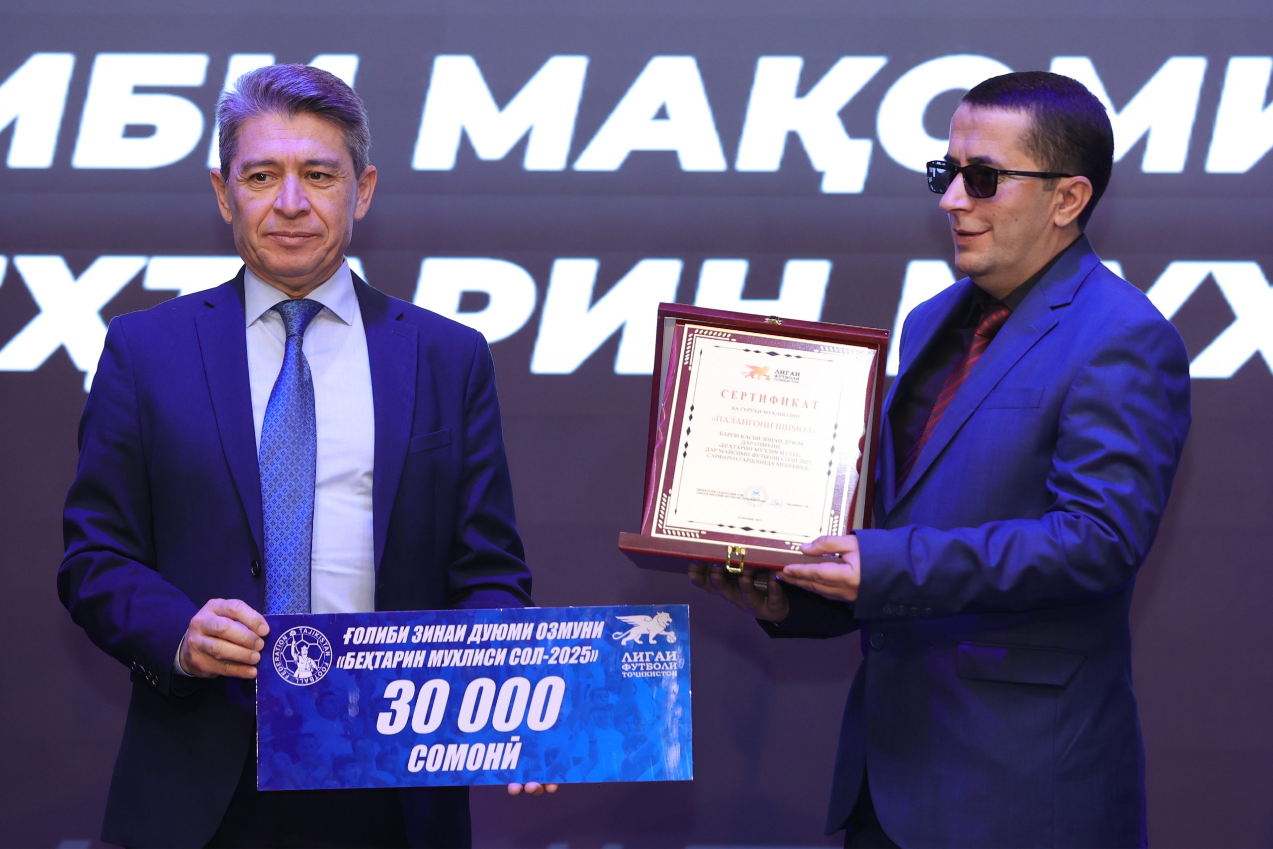 Победителем в номинации «Лучший болельщик 2025 года» стал фан-клуб «Равшана» – «Шерони Кулоб», которому был вручен денежный приз в размере 40 тысяч сомони. Второе место занял фан-клуб «Истаравшана» – «Палангони шимол» (30 тысяч сомони), третье – фан-клуб бохтарского «Вахша» – «Палангони Водии Вахш» (20 тысяч сомони).