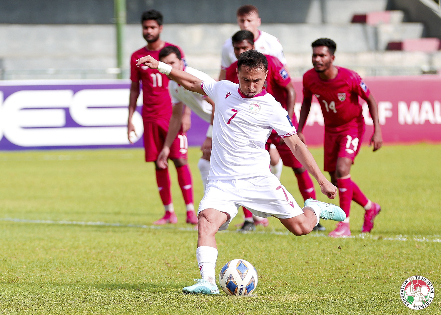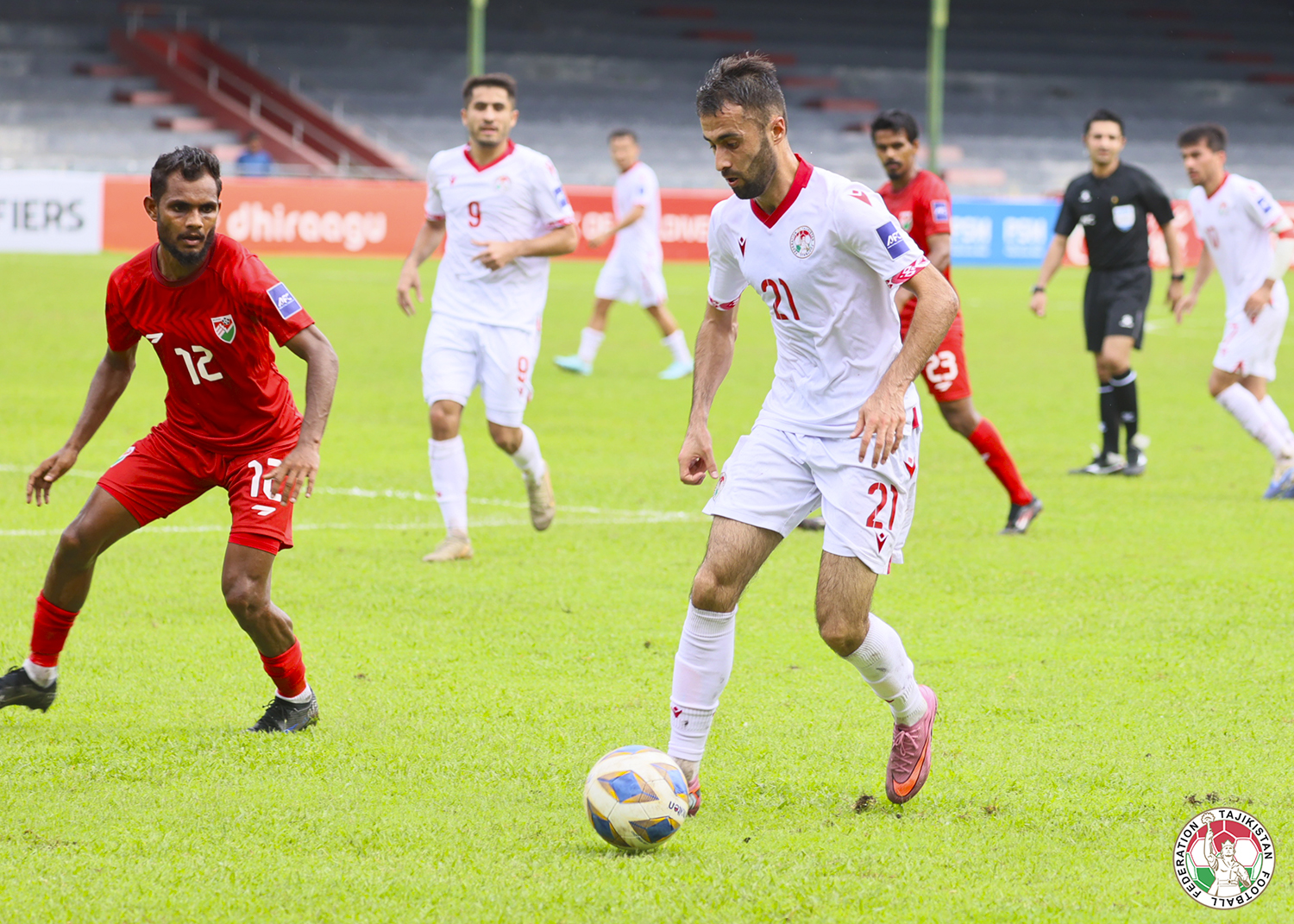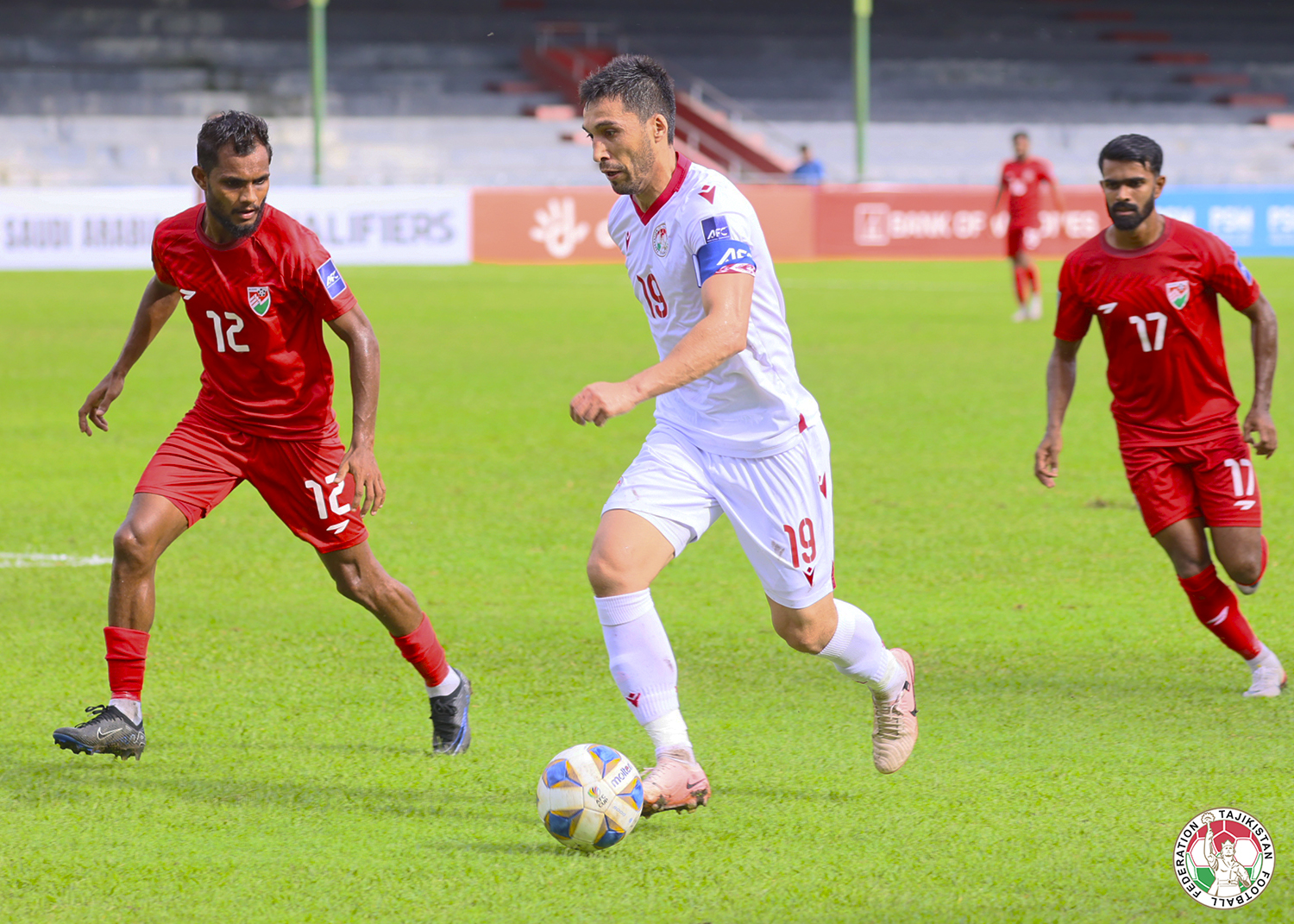 Представляем вашему вниманию фотообзор матча четвертого тура отборочного турнира Кубка Азии-2027 в группе «А» между национальными сборными Мальдив и Таджикистана. Встреча прошла во вторник, 14 октября, на Национальном стадионе в Мале и завершалась крупной победой нашей команды – 3:0. В составе сборной Таджикистана дубль сделал Шервони Мабатшоев. Еще один гол на свой счет записал Манучехр Сафаров.