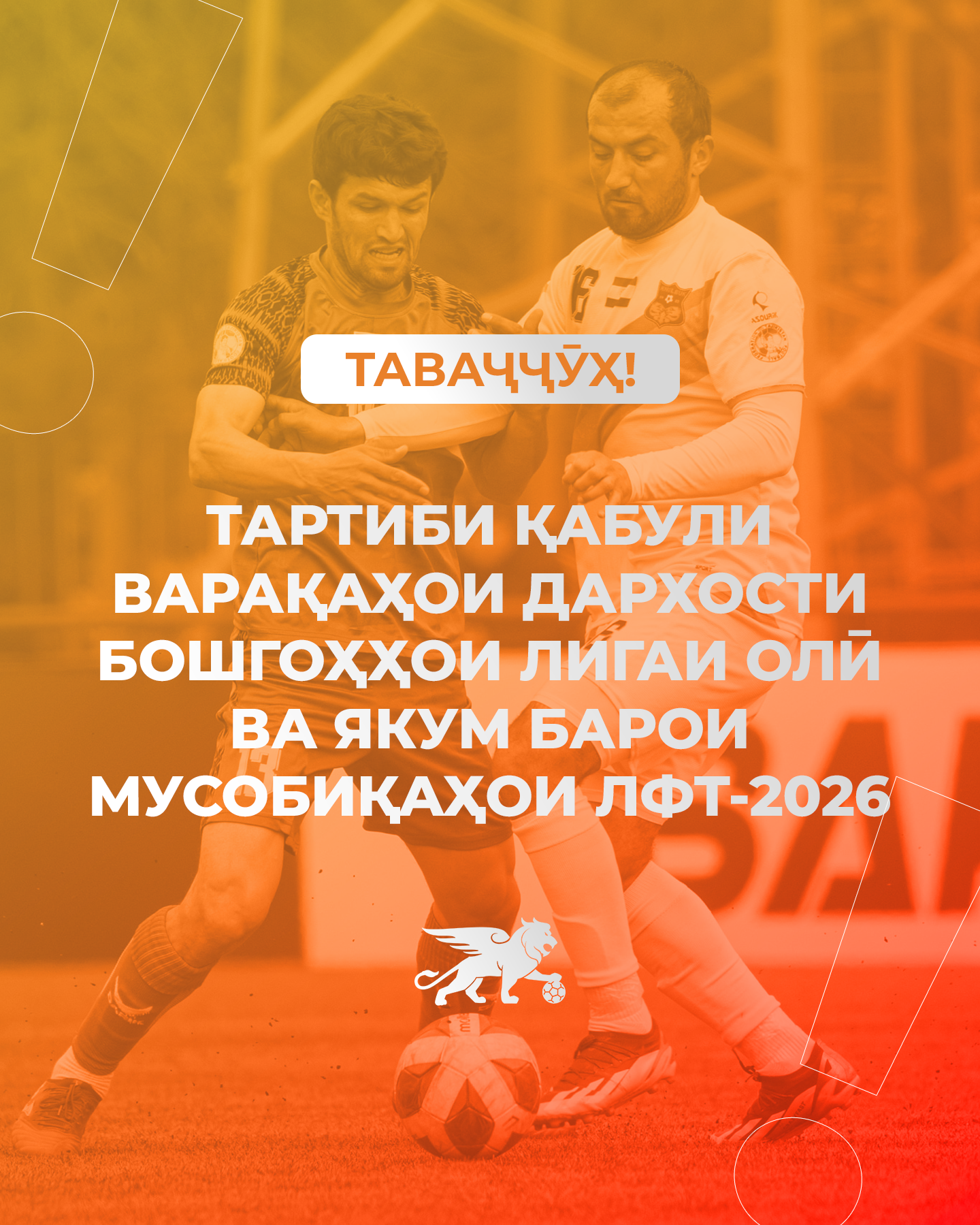 Футбольная лига Таджикистана утвердила график регистрации и заявки футболистов клубов высшей и первой лиг для участия в сезоне-2026. Заявочный период продлится с 25 февраля по 5 марта включительно.