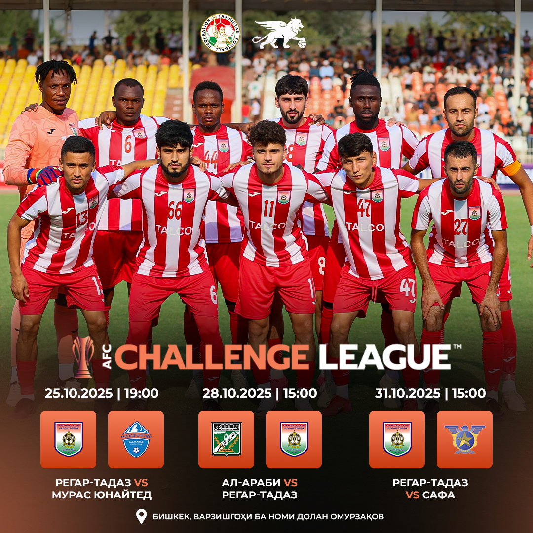 В своем первом матче «Регар-ТадАЗ» сыграет с клубом «Мурас Юнайтед» из Кыргызстана. Встреча пройдет в субботу, 25 октября, на стадионе имени Долена Омурзакова в Бишкеке и начнется в 19:00 часов по душанбинскому времени.
