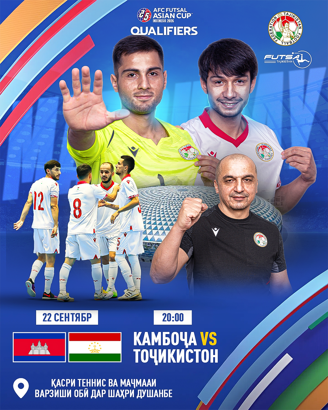 В понедельник, 22 сентября, в Многофункциональном спортивном комплексе Душанбе – Дворце тенниса и водных видов спорта пройдут матчи второго тура отборочного турнира Кубка Азии-2026 по футзалу в группе «С».