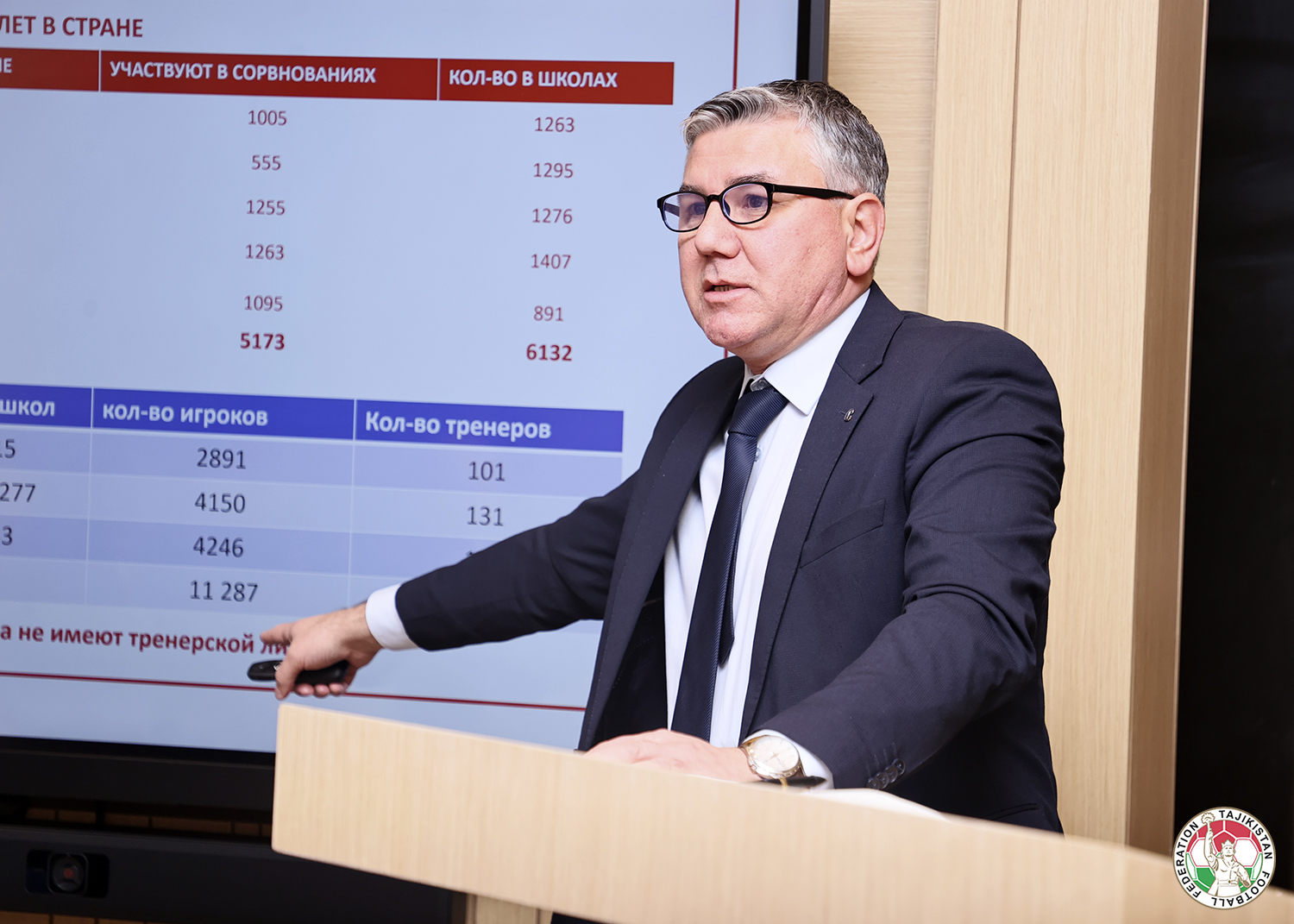 Технический директор ФФТ Увайдо Давлатбеков выступил с отчетом об изменениях в системе тренировочного процесса юных игроков, представил детальный анализ, а также рассказал о внедрении и проведении соревнований между специализированными футбольными школами.