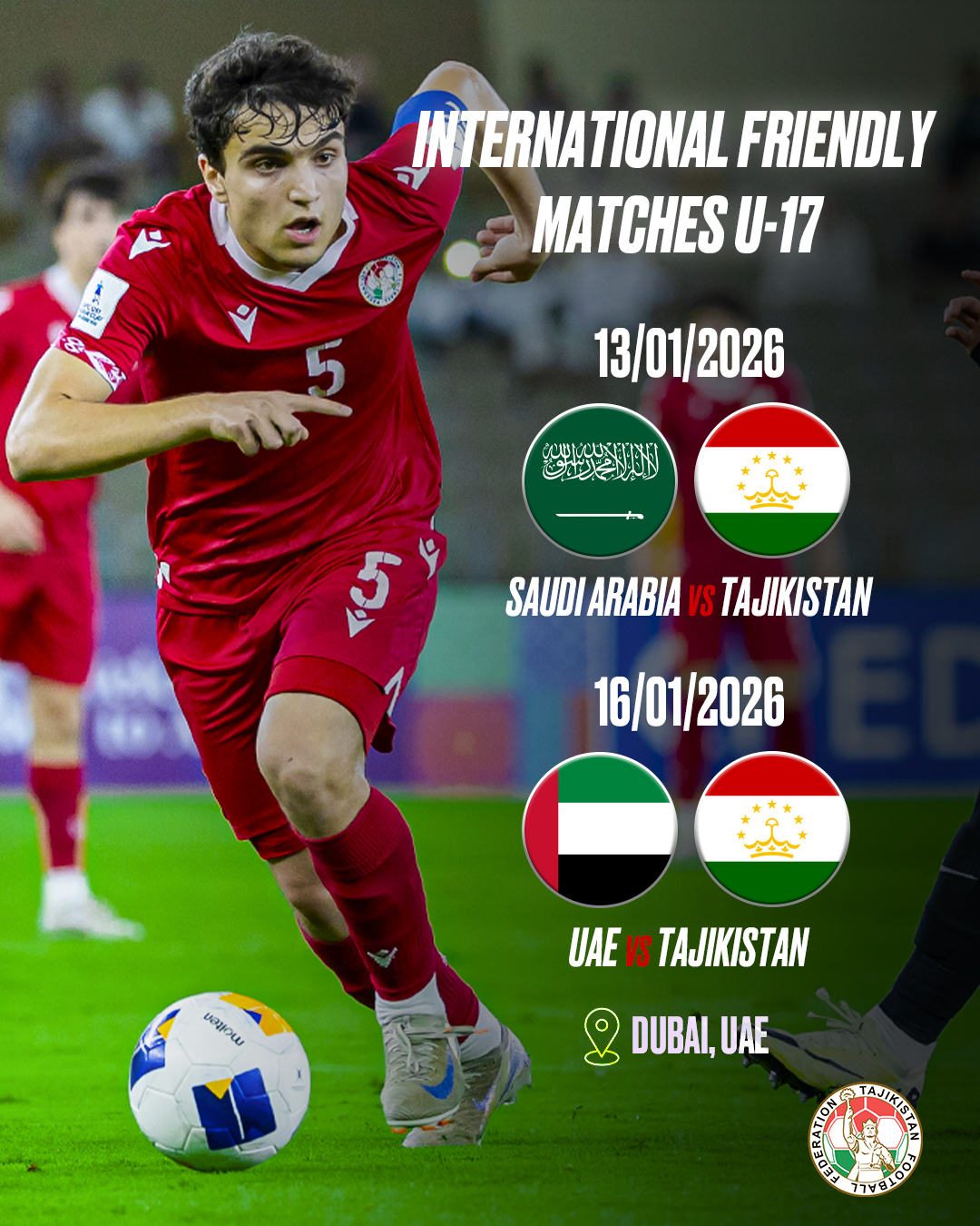 В рамках подготовки к финальной части Кубка Азии-2026 юношеская сборная Таджикистана (U-17) под руководством Далера Каёсова в январе сыграет два товарищеских матча.